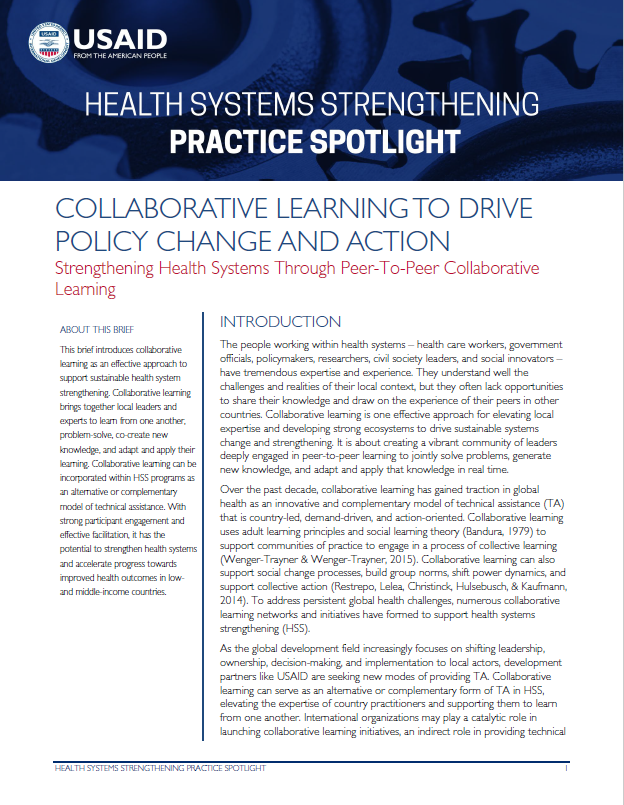 Health Systems Strengthening Practice Spotlight: Collaborative Learning to Drive Policy Change and Action