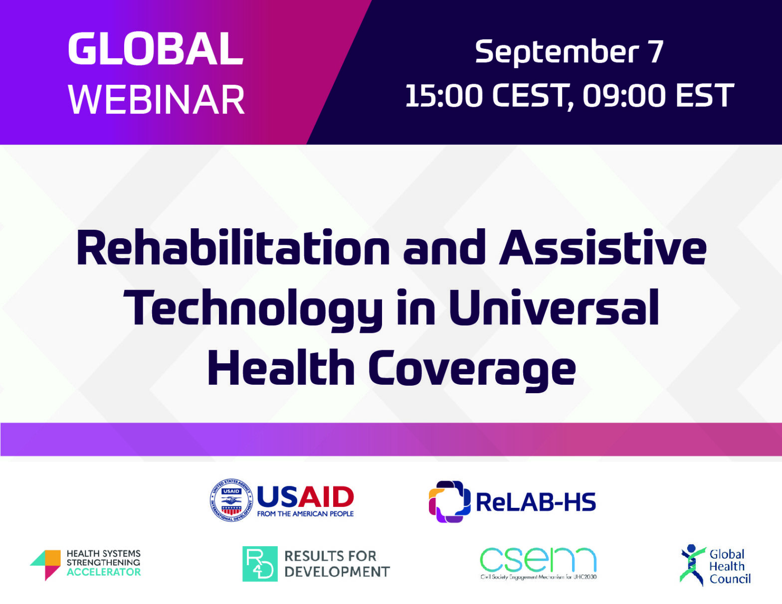 September 7, 2023 15:00 CEST / 9 EST on Zoom Close captioning in English will be provided Register here Rehabilitation and assistive technology are crucial for optimizing the functioning, health, and well-being of persons with health conditions and are an integral part of Universal Health Coverage (UHC). However, coverage of rehabilitation services and assistive technology …